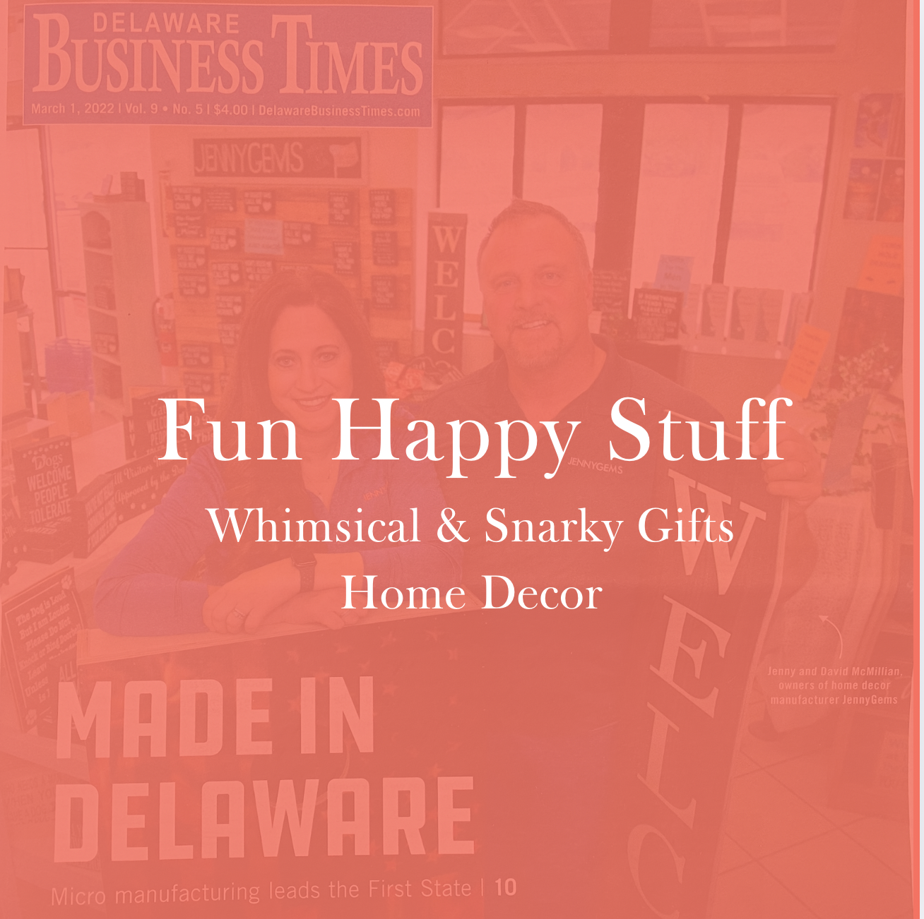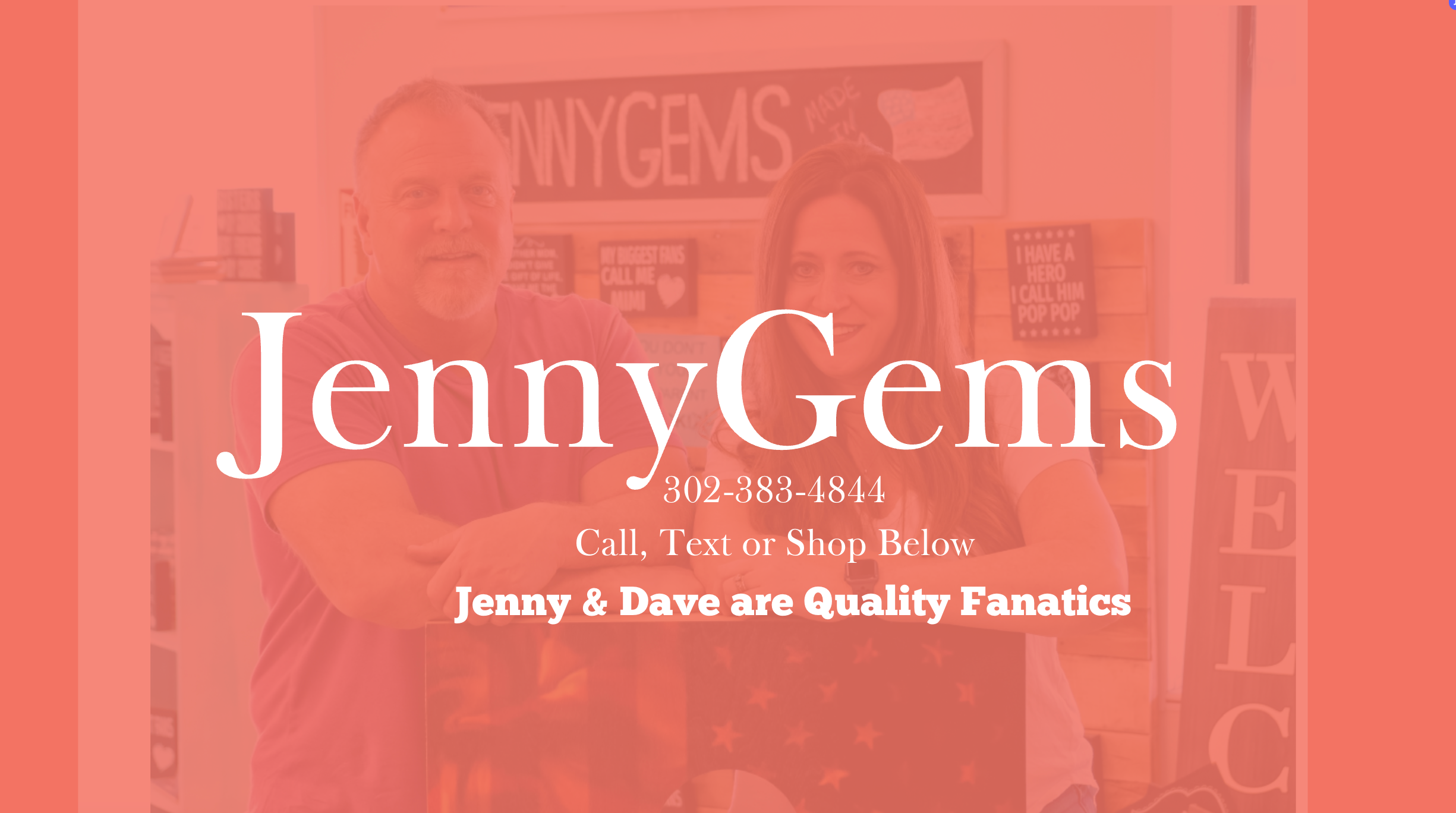 About Us – Celebrating 10 Years of JennyGems!2025 marks 10 years of JennyGems—a journey filled with passion, perseverance, and growth. What started in Jenny & Dave's basement has evolved into a full-scale Delaware-based manufacturing business, crafting handmade home decor, signage, and gifts loved nationwide.Through ups and downs, we've remained committed to quality and creativity, proudly overcoming challenges along the way. Our dedication has earned Jenny McMillan the Small Business Association’s Woman-Owned Business of the Year award, and JennyGems has been featured on CNBC and other national networks.We’re excited for the future and grateful for your support—here’s to the next 10 years of crafting American-made products with heart! 🎉